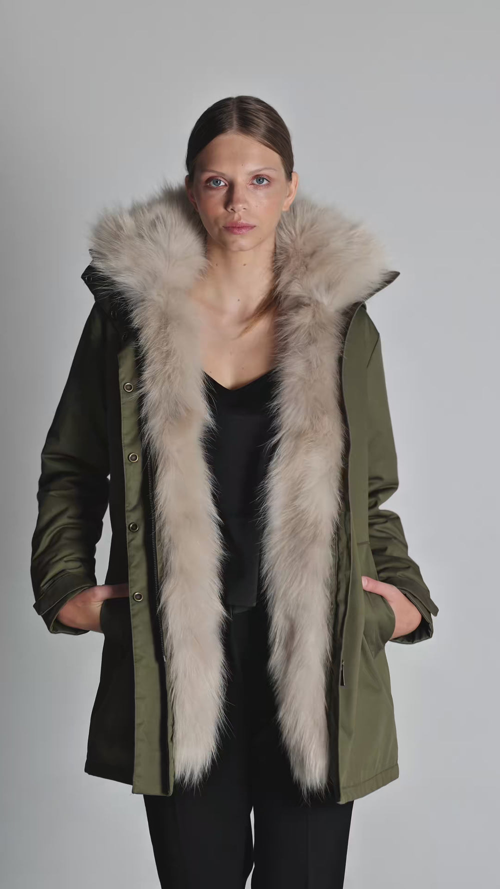 ELEGANT SHORT PARKA WITH WHITE FINLAND FOX