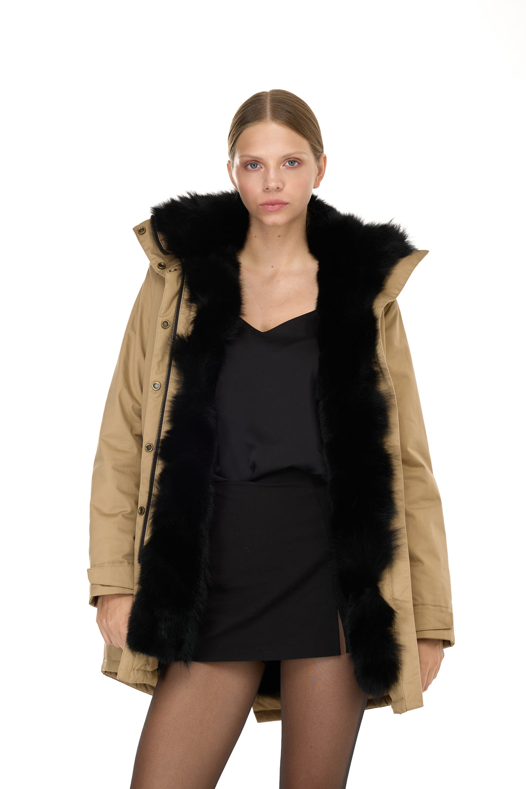 X-Long Elegant Long Parka Black Coyote