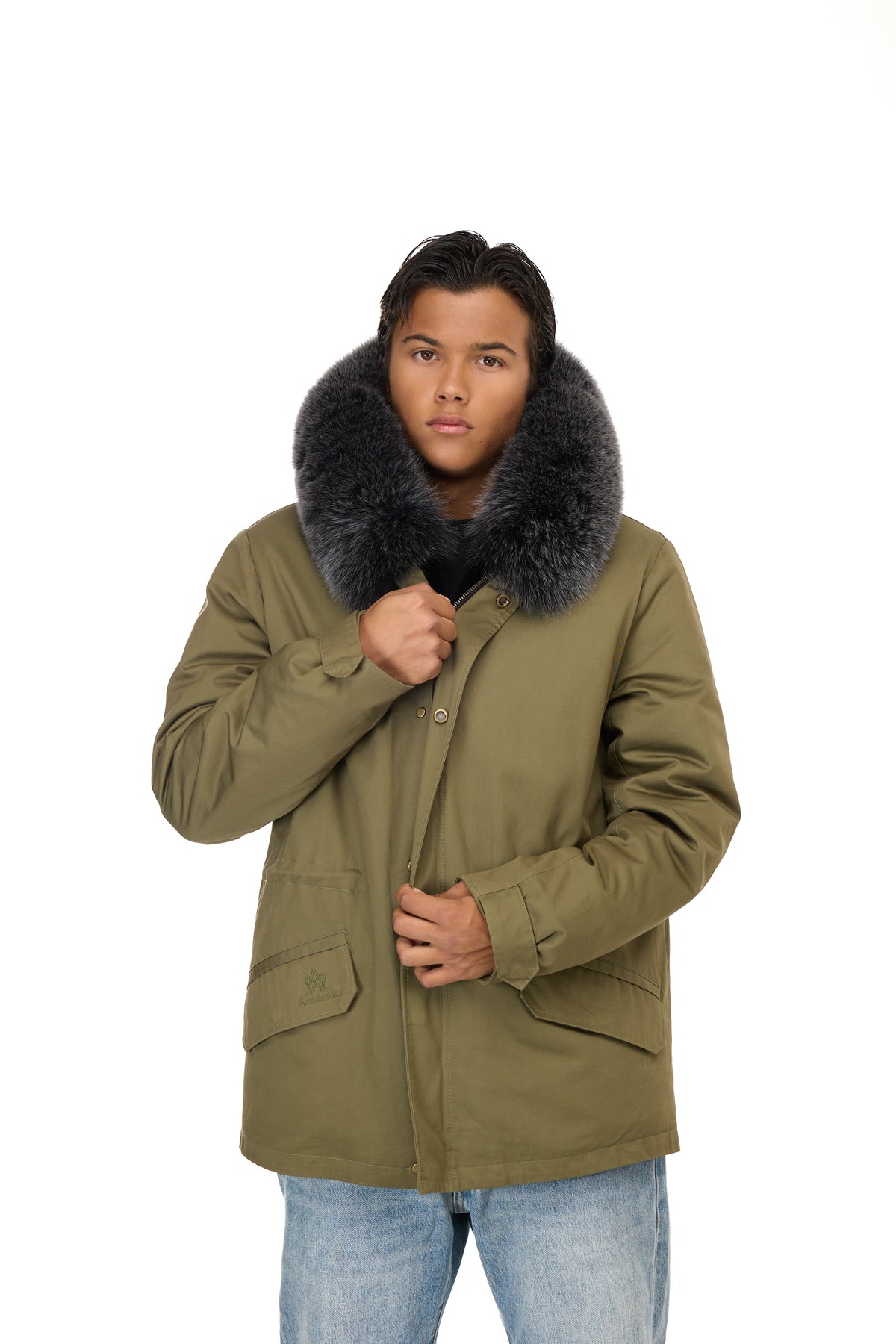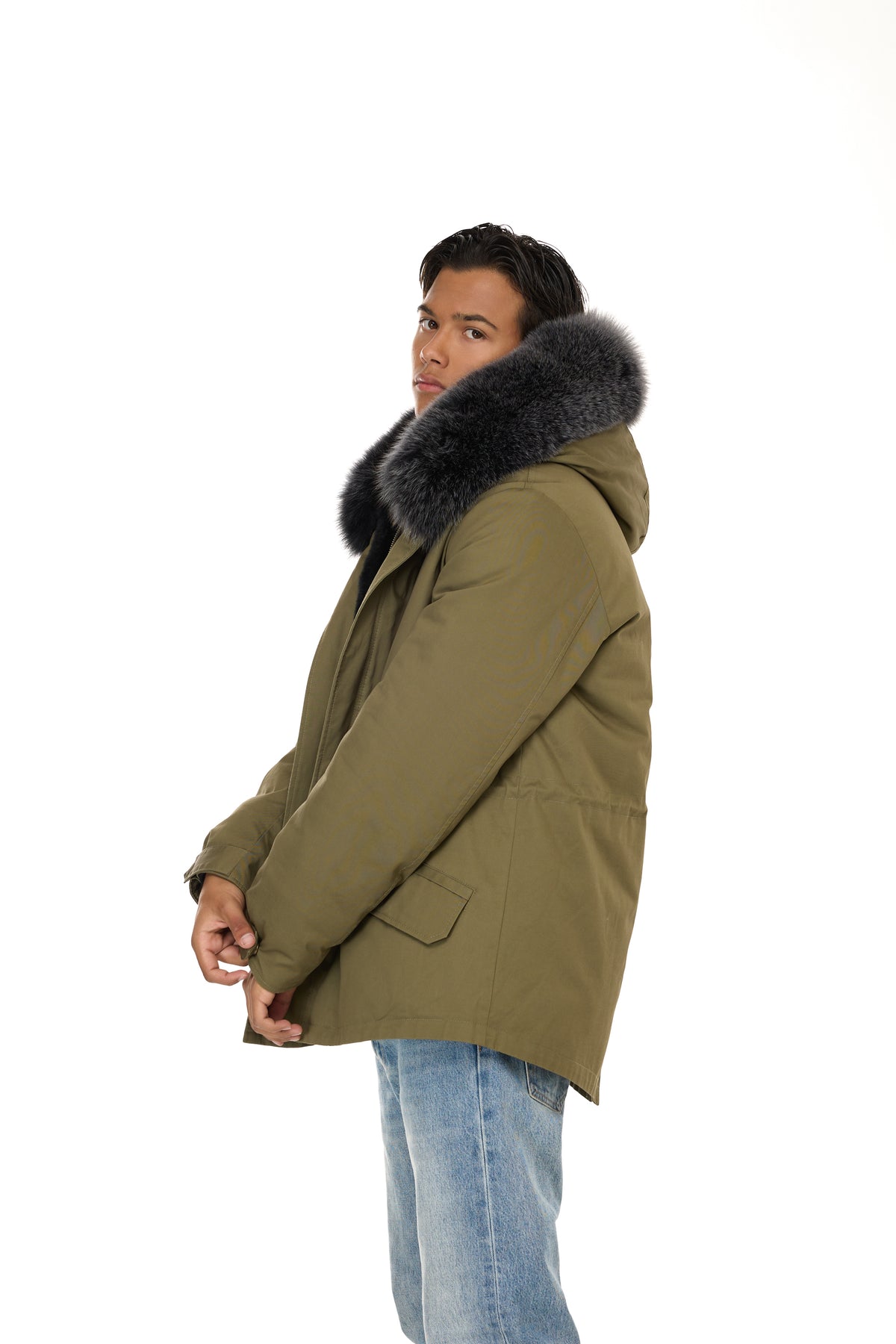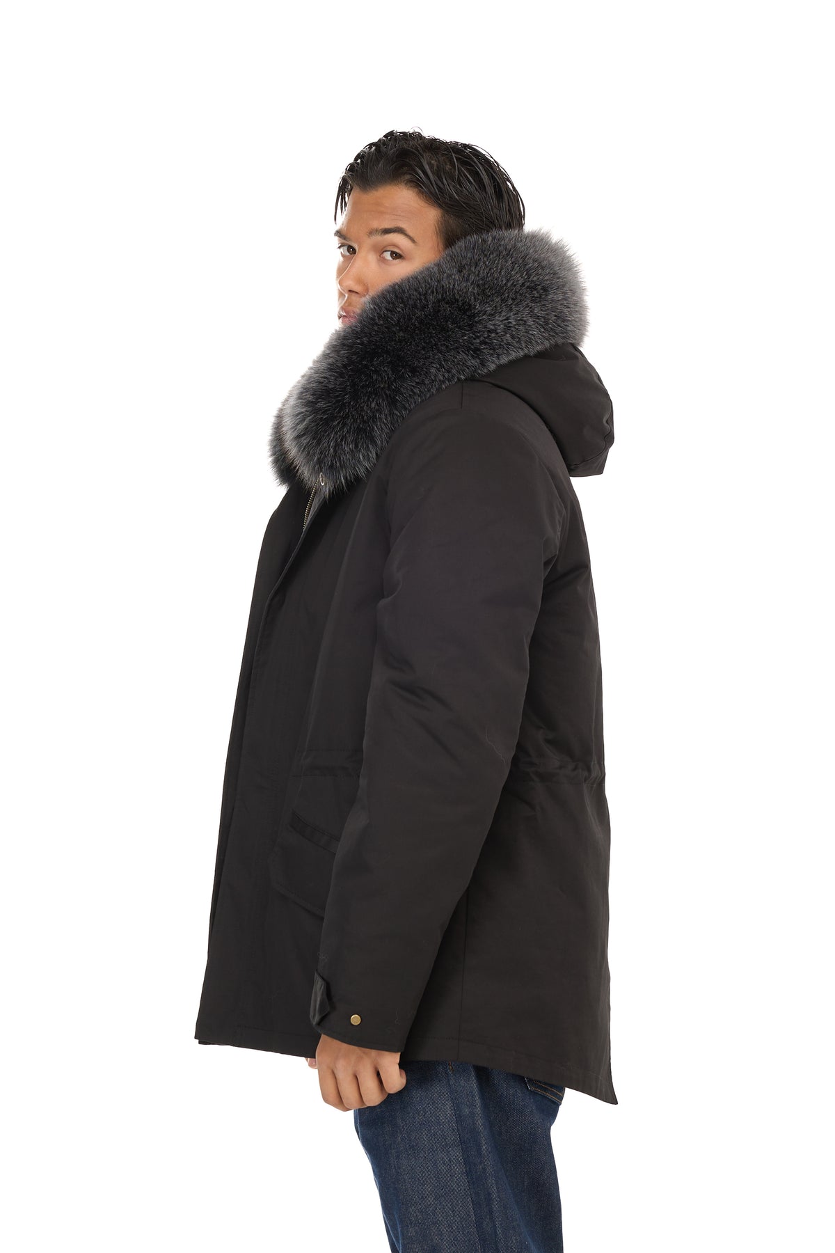 象徴的なデザインは、次のような機能的なディテールによってさらに豊かになっています。 調節可能なドローストリングウエスト、ザ 取り外し可能なフォックスファーのトリムが付いたフード実用的なフロントポケットと特徴的な リアフィッシュテール