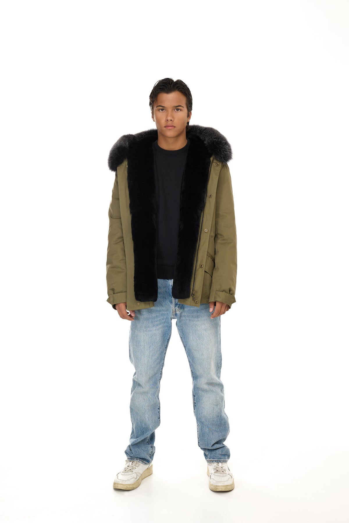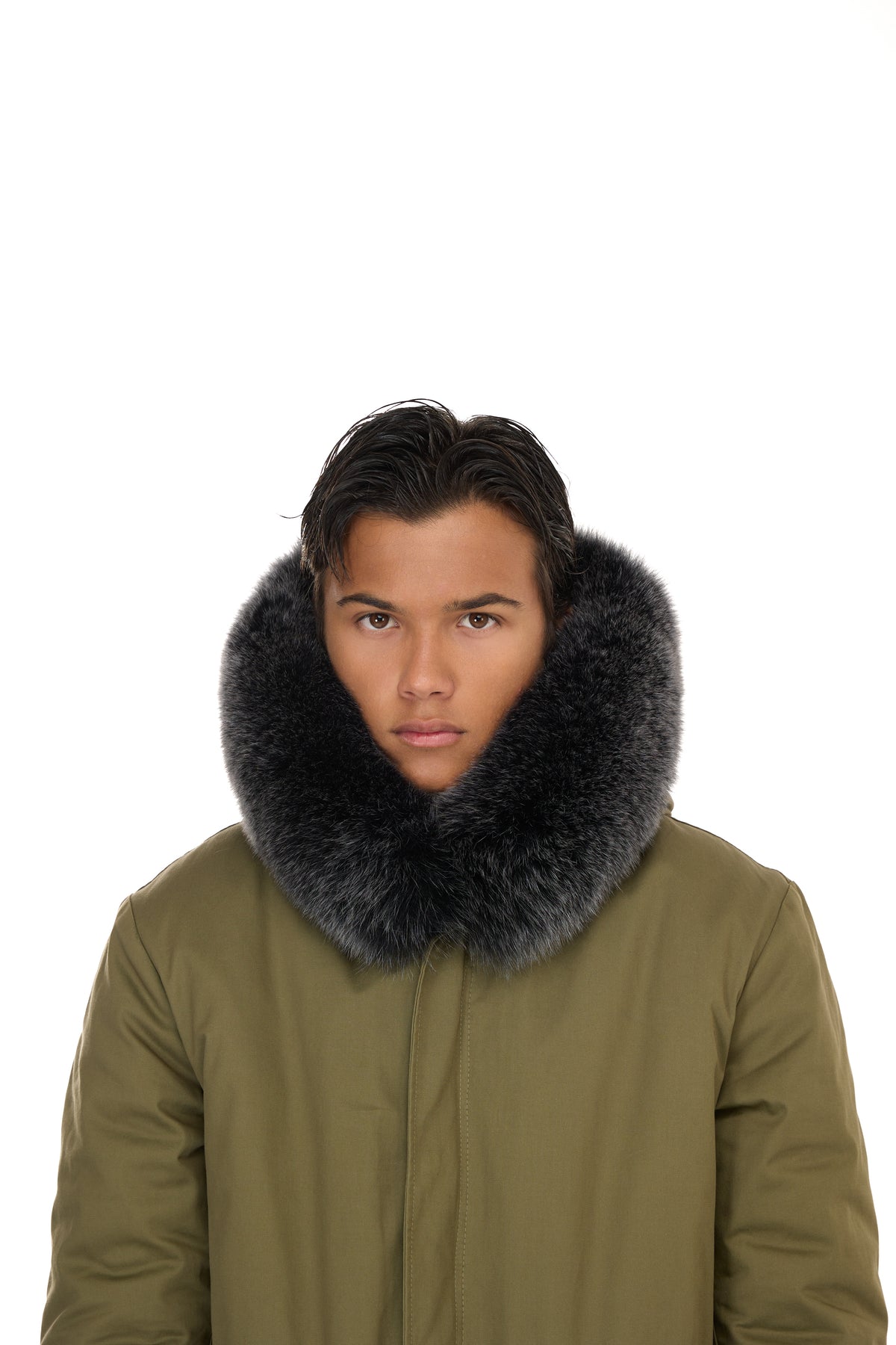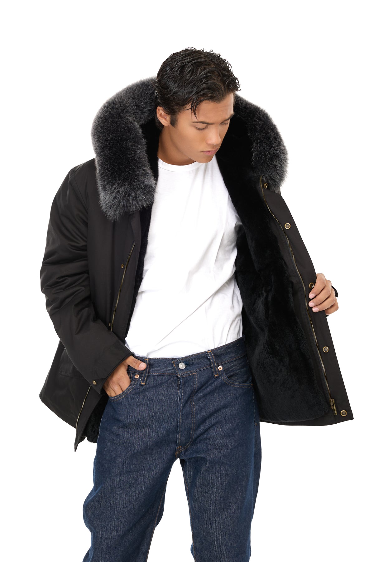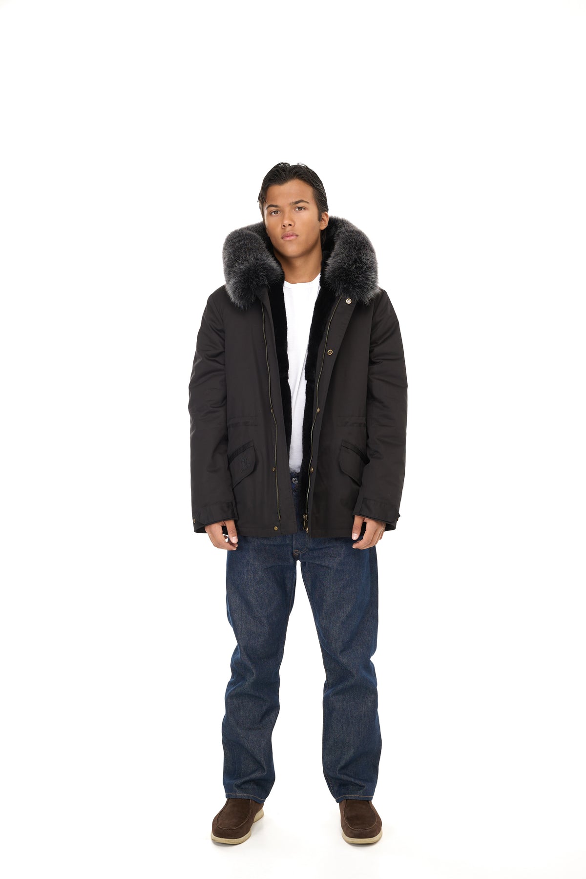 象徴的なデザインは、次のような機能的なディテールによってさらに豊かになっています。 調節可能なドローストリングウエスト、ザ 取り外し可能なフォックスファーのトリムが付いたフード実用的なフロントポケットと特徴的な リアフィッシュテール