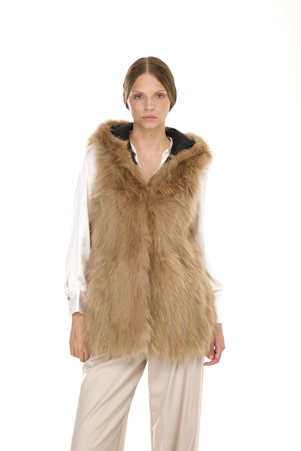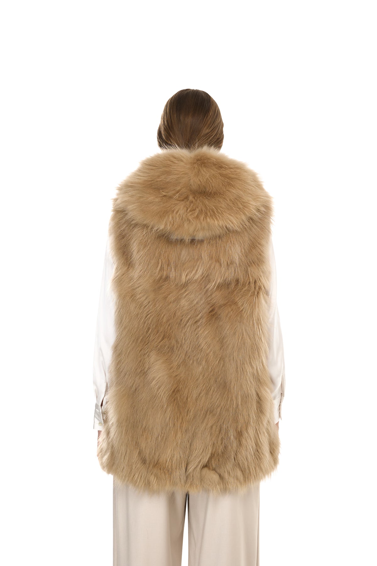 内側には本物のコヨーテファーのライニングが施され、暖かさと個性を演出します。取り外し可能なので、単独で着用できる独立したベストとして活用でき、最大限の自由度と汎用性を提供します。