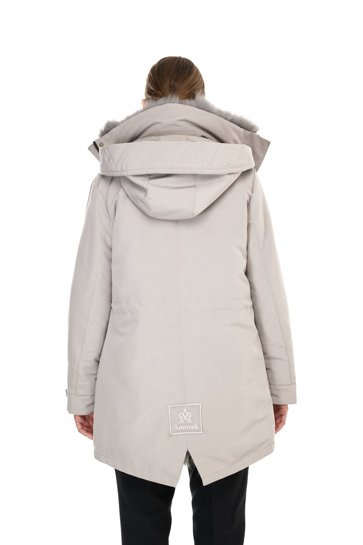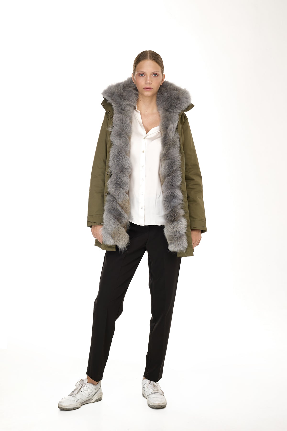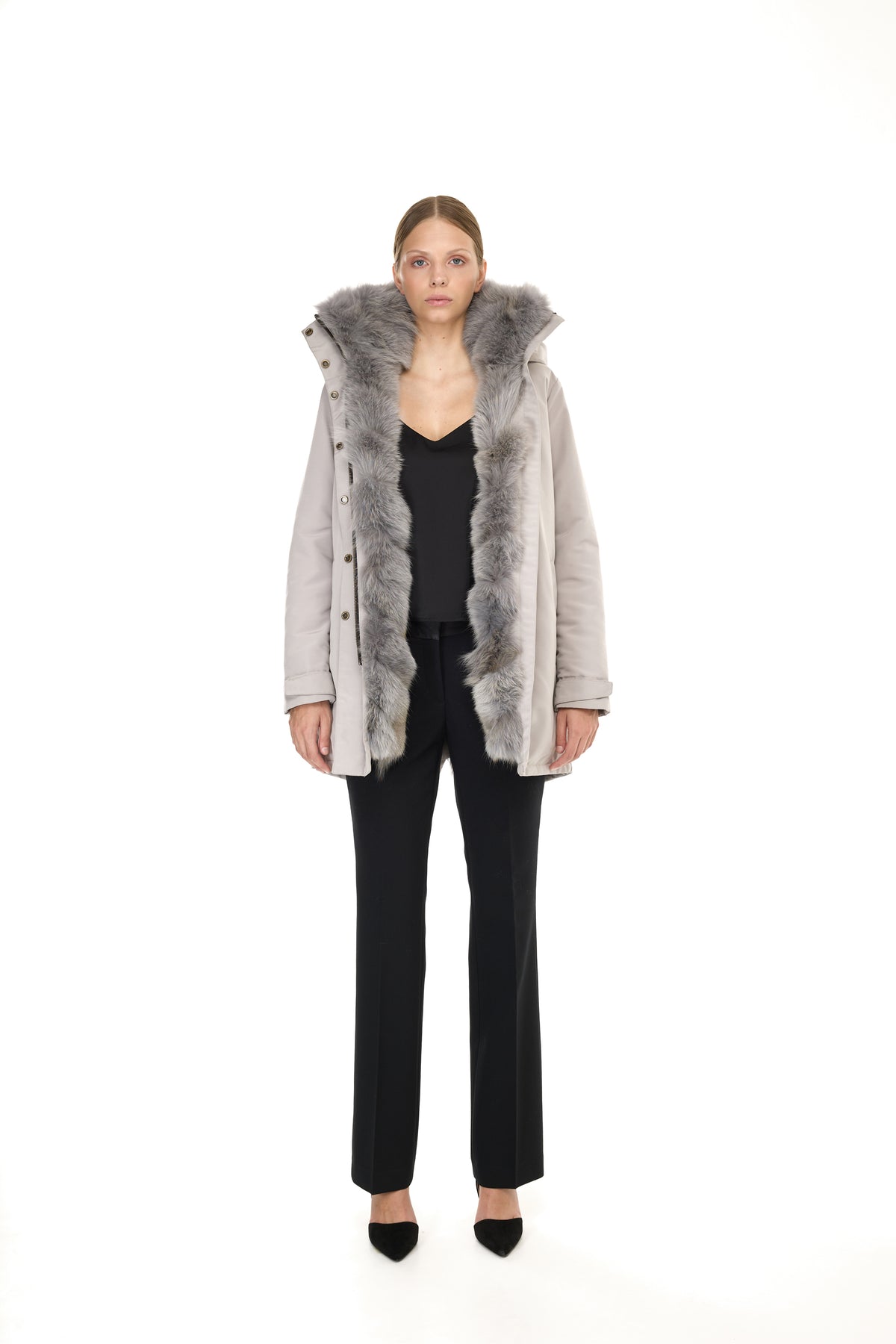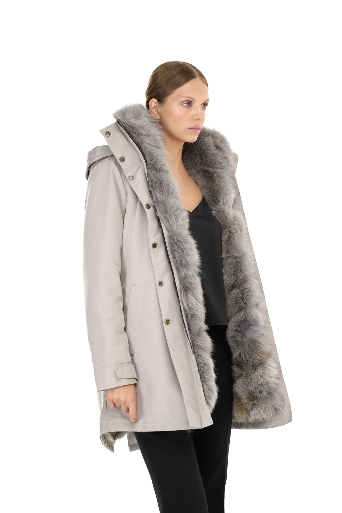 모피 안감을 제거하면 겉감은 가벼운 파카로 변신합니다. 봄과 시원한 여름 저녁에 딱 맞는 아이템이며, 깔끔한 실루엣과 세련된 핏은 그대로 유지됩니다.